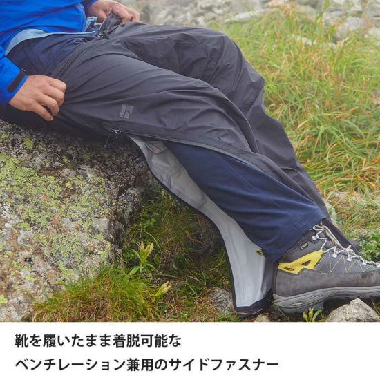 • ファスナー単体で十分な耐水圧を備え、稜線や強風下でも雨水をシャットアウト