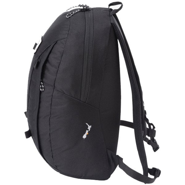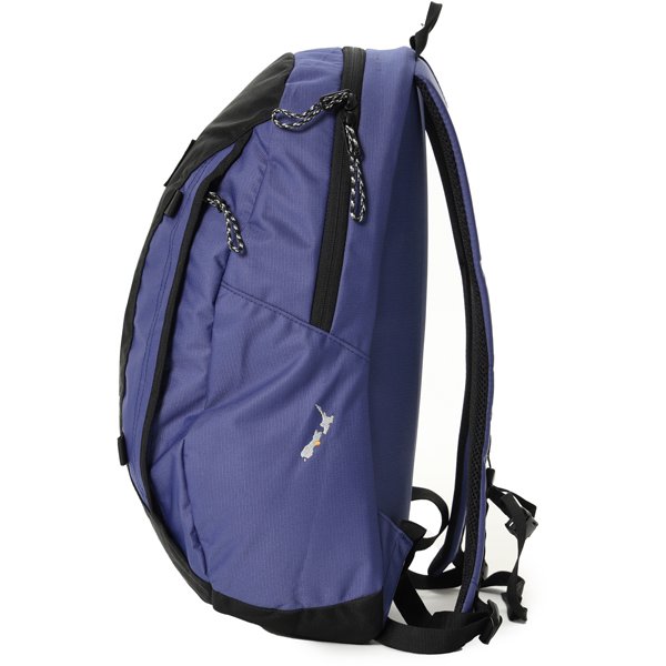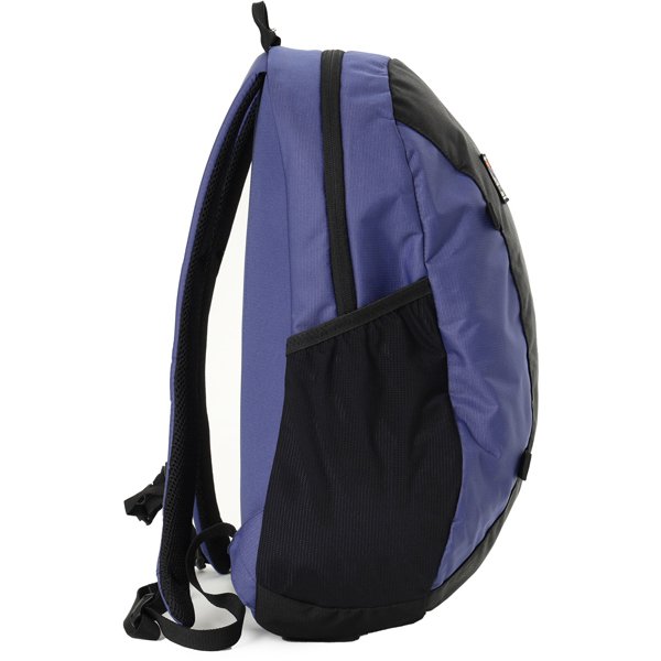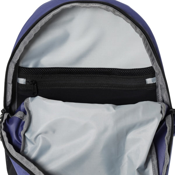 14インチまでのノートPC対応スリーブとキークリップ付きファスナーポケットつき。小物の収納に便利なフロントの縦型ファスナー、ボトルなども収納できる右サイドのメッシュポケットなど、容量18Lながら充実の収納力。