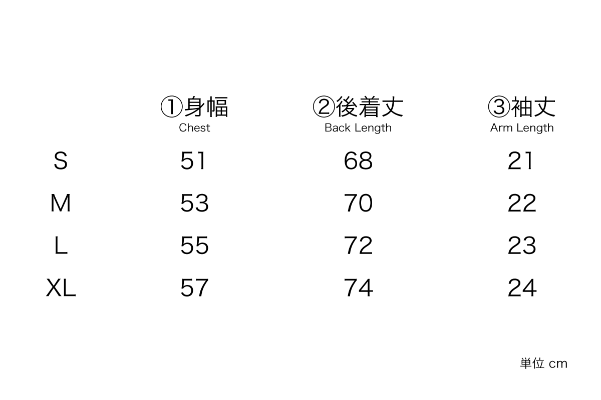 - Measurements are taken flat (unit: cm)