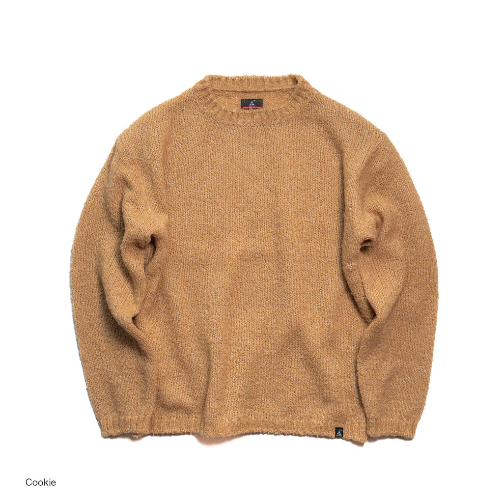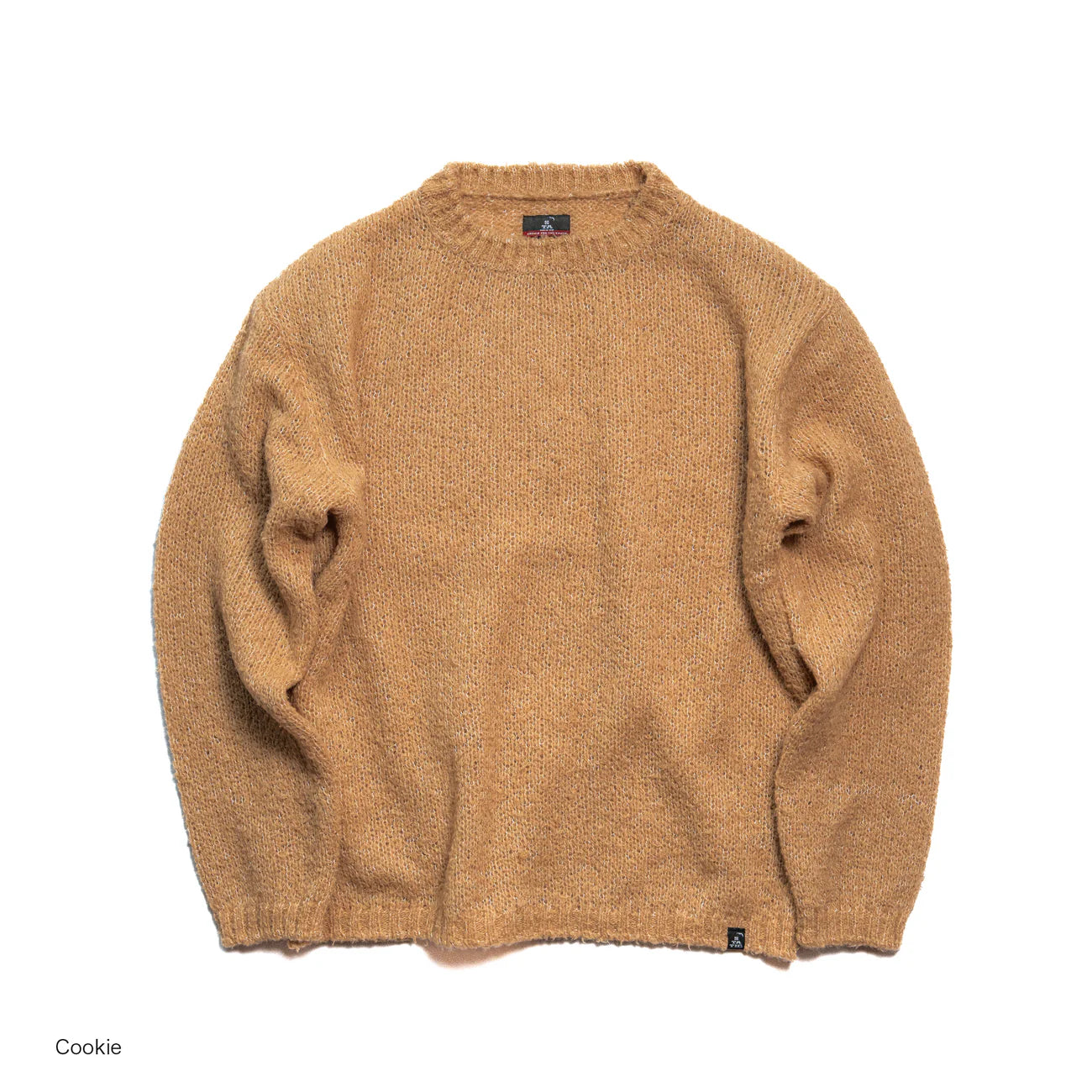 ROAR HI-LOFTは、通常のROARとは異なる製法で作られた特別な糸「AYUKAN」を使用しています。中空のOcta®糸に全長1㎝ほどのフレンチメリノウールを絡めることで、軽量ながら膨らみと暖かさを兼ね備えたニットに仕上げました。粗めの編み目とプレシュリンク加工により、耐摩耗性を高め、繊維抜けを防止しています。