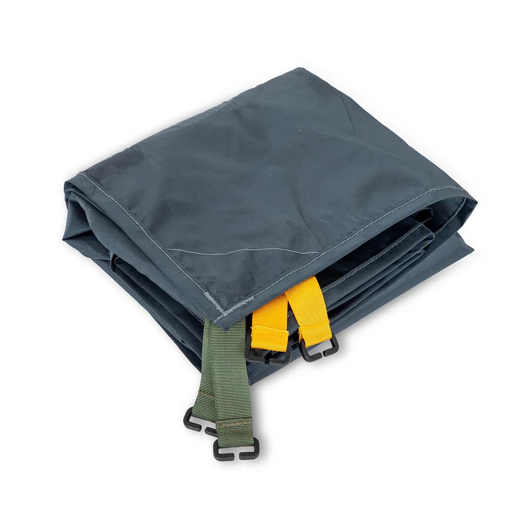 The durable 75D polyester footprint protects the floor from pebbles and branches, extending the tent's lifespan by preventing wear and tear. It's also highly waterproof, reducing the risk of water ingress from the ground and flooding during rainy weather. Folding the tent on the footprint also helps prevent dirt and dust from getting into the tent when storing it.