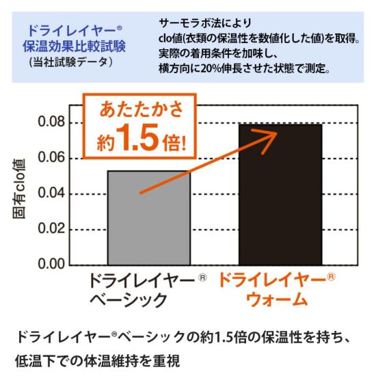 • ドライレイヤー®ベーシックの約1.5倍の保温性