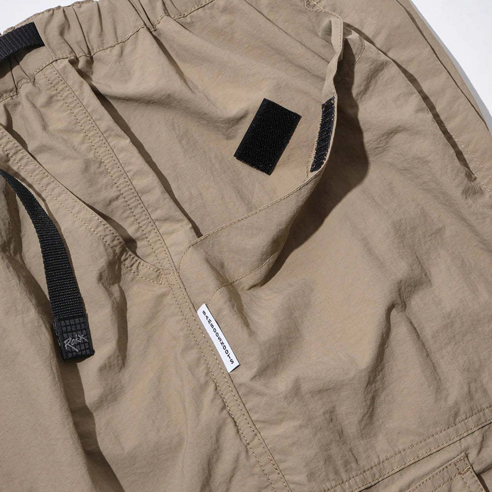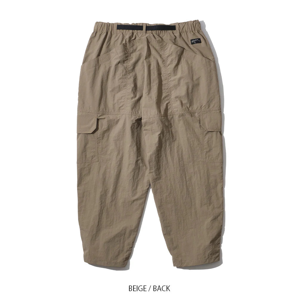 ・Collaboration model with ROX ・Equipped with large-capacity pockets on the front and back ・Wide tapered silhouette ・Equipped with large and small cargo pockets perfect for storing gadgets ・Brand-original V-shaped gusset ・Includes a loop for hanging key rings, etc.