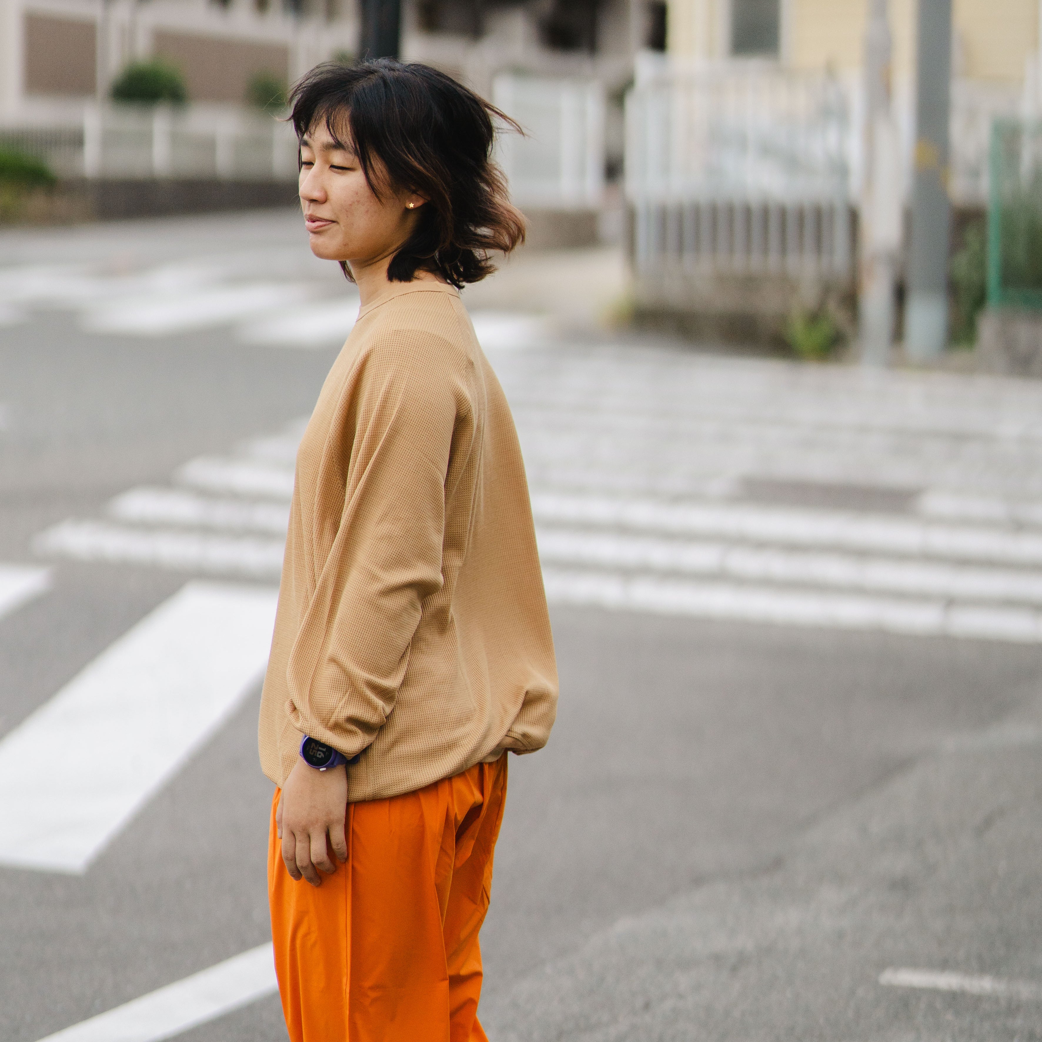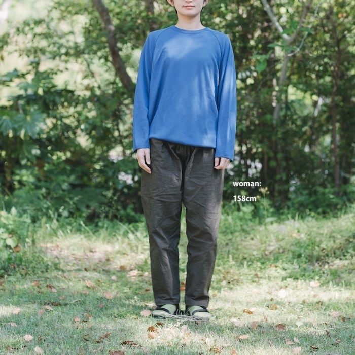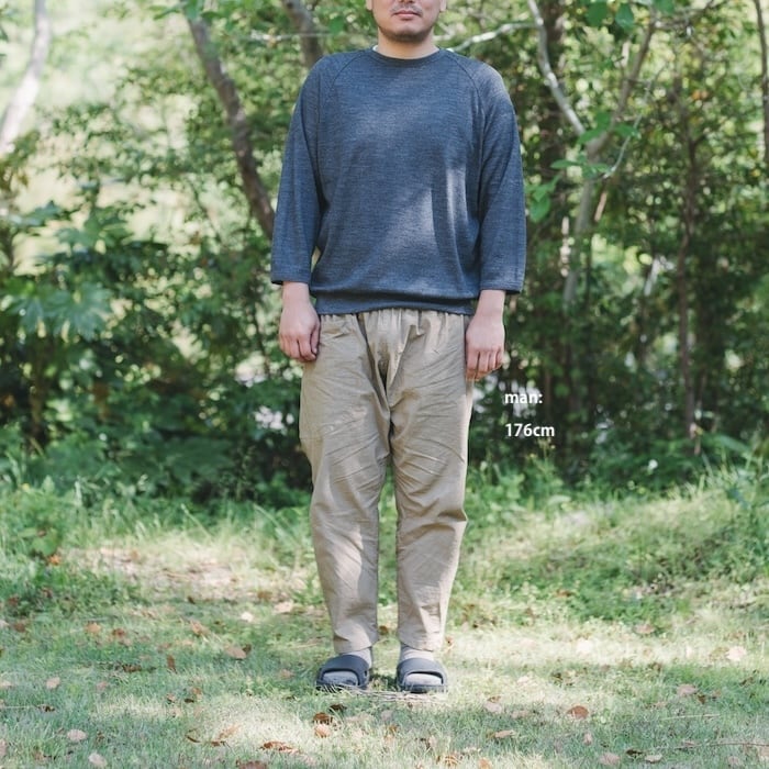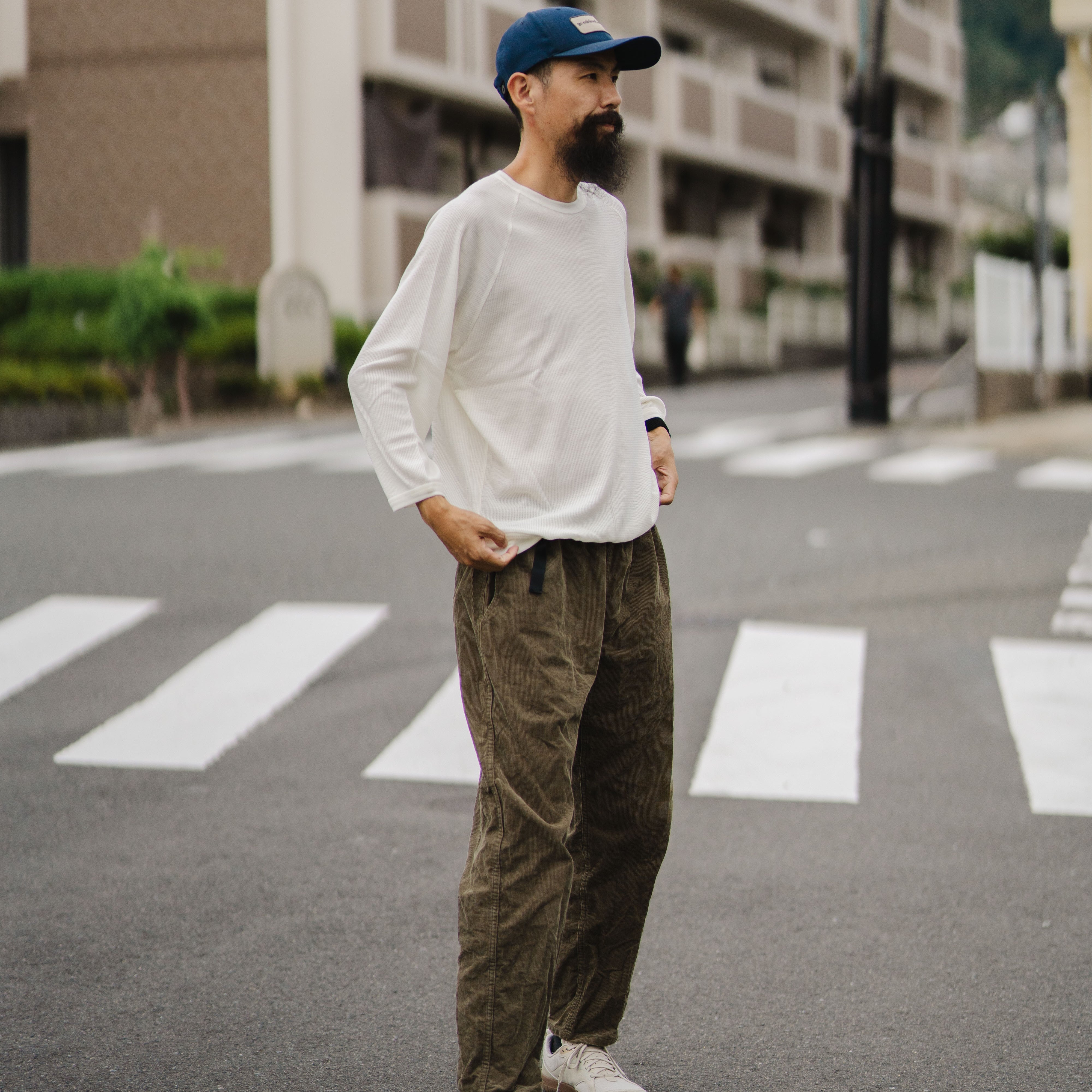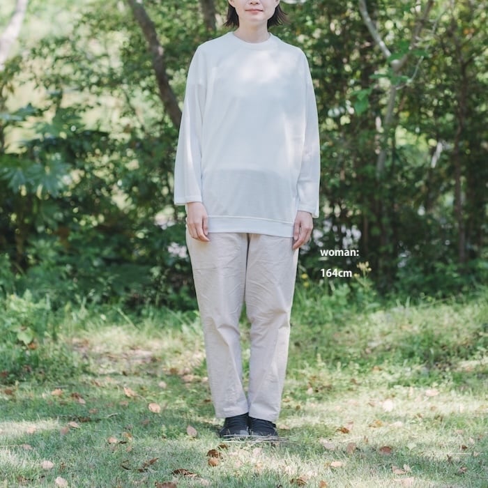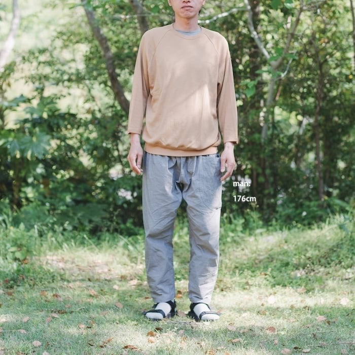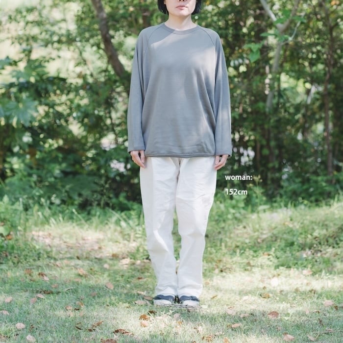 The design has a relaxed silhouette, but by using loose ribbing made of the same material at the cuffs and hem, both the Short Sleeve and Three-Quarter Sleeve have been finished with an elegant knit feel that suits any body type.However, by combining raglan sleeves and hidden gussets at the sides made with a pattern for mobility in the shoulders, it also has a sense of activeness that allows for full movement.