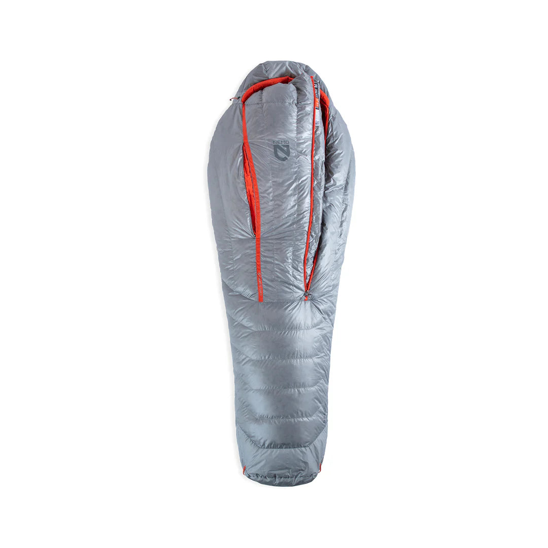 The lining is made of soft, 100% recycled polyester taffeta (bluesign® certified), making it environmentally friendly. Furthermore, the PFAS-free water-repellent finish makes it water-resistant and stain-resistant. This NEMO sleeping bag is packed with attention to detail, from warmth to comfort and safety.
