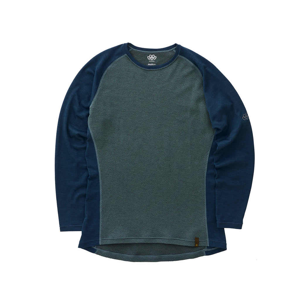 This simple, easy-to-layer long-sleeve jacket features "MOB Wool" in the core and "Axio 3D" in the shoulders, arms, and underarms. The core, made with "MOB Wool," allows for quick adjustment of warmth and cool-down levels by simply removing and adding layers and ventilating. Worn alone, it prevents heat buildup, making it ideal for high-intensity activities. "Axio3D" maintains moderate warmth in the shoulders, arms, and underarms, areas that tend to lose heat easily when chilled.