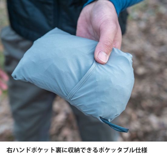 The front side, which is exposed to the wind, is made of ultra-thin waterproof and breathable fabric "Everbreath® Mu", which provides a high level of balance between wind resistance, lightness, ease of movement, and resistance to stuffiness.