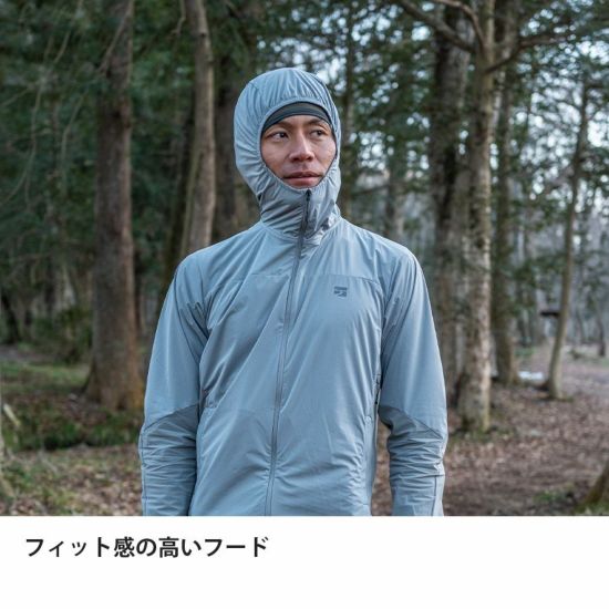 Combining wind resistance and light weight, the front and shoulders are made of ultra-lightweight waterproof and breathable fabric "Everbreath® Mu" (not compatible with seam tape).