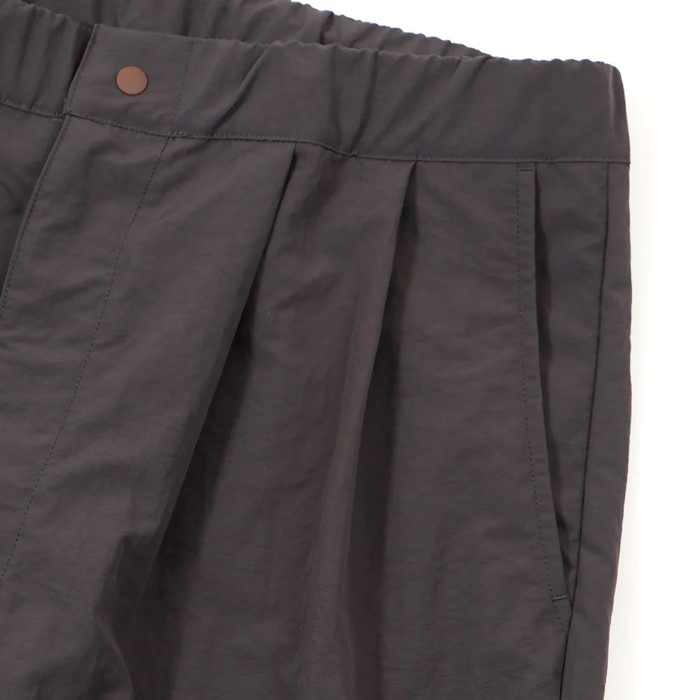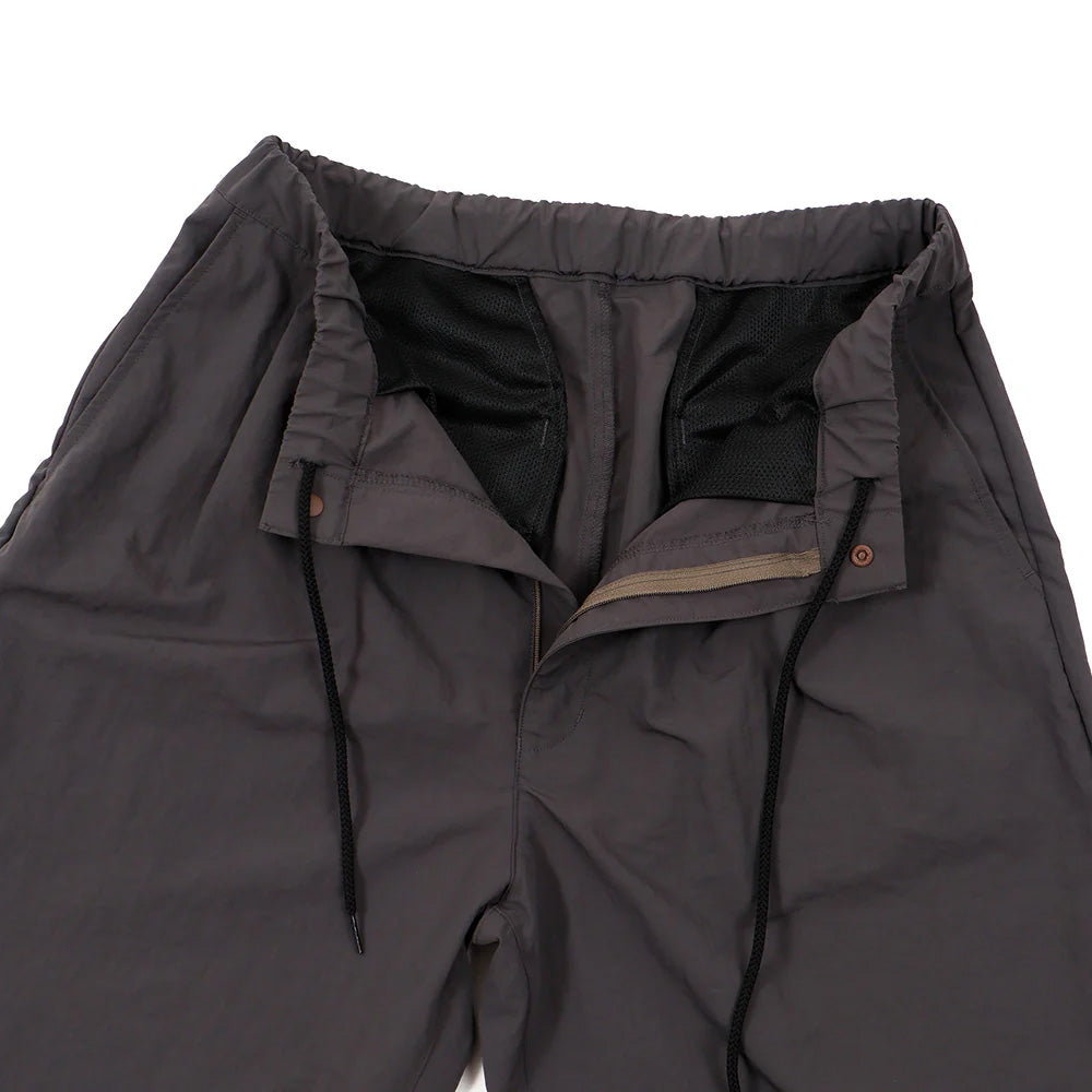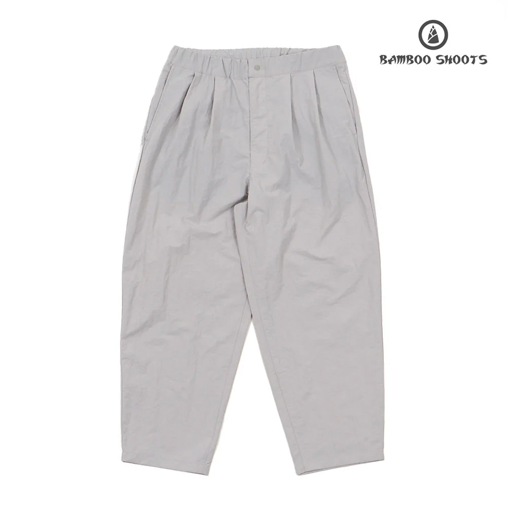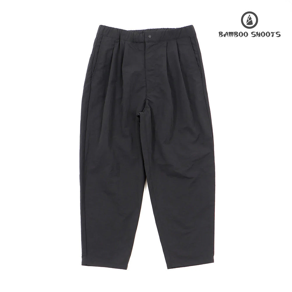 ・A model that uses functional materials in BAMBOO SHOOTS' climbing pants TYPE-3. ・An updated item suitable for serious mountain climbing. ・Lighter comfort. ・Uses a material with excellent quick-drying and breathability. ・Maintains the same large, relaxed silhouette, but with a new drawcord waist. ・A new pocket in the back pocket can hold a smartphone. ・A D-ring is installed at the top of the right back pocket.