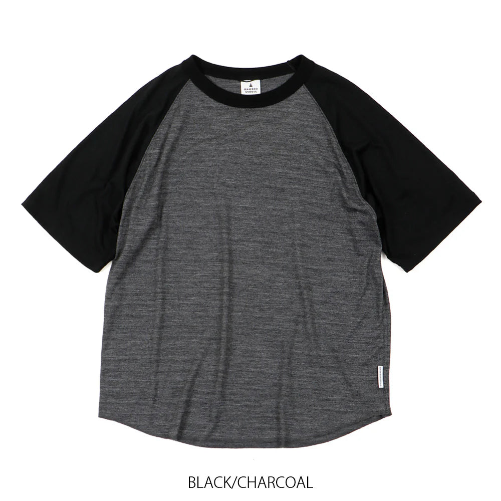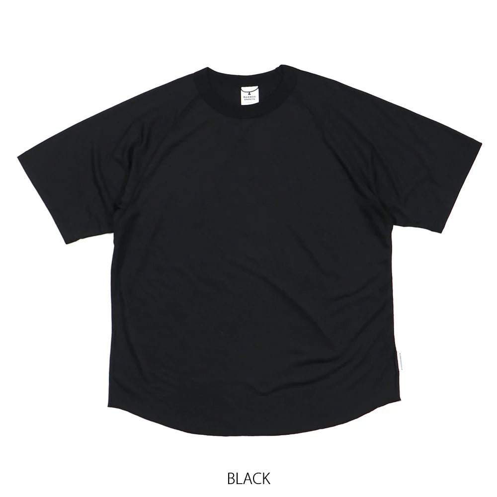 ・Can be worn as a base layer or on its own ・Raglan sleeves for a big silhouette that doesn't restrict arm movement ・The hem is finished with a two-needle lock stitching, modeled after baseball tees ・Superb softness thanks to the fine fibers ・Excellent moisture absorption thanks to Coolmax ・Binder-style milling around the neck ・COOL MAX 30%