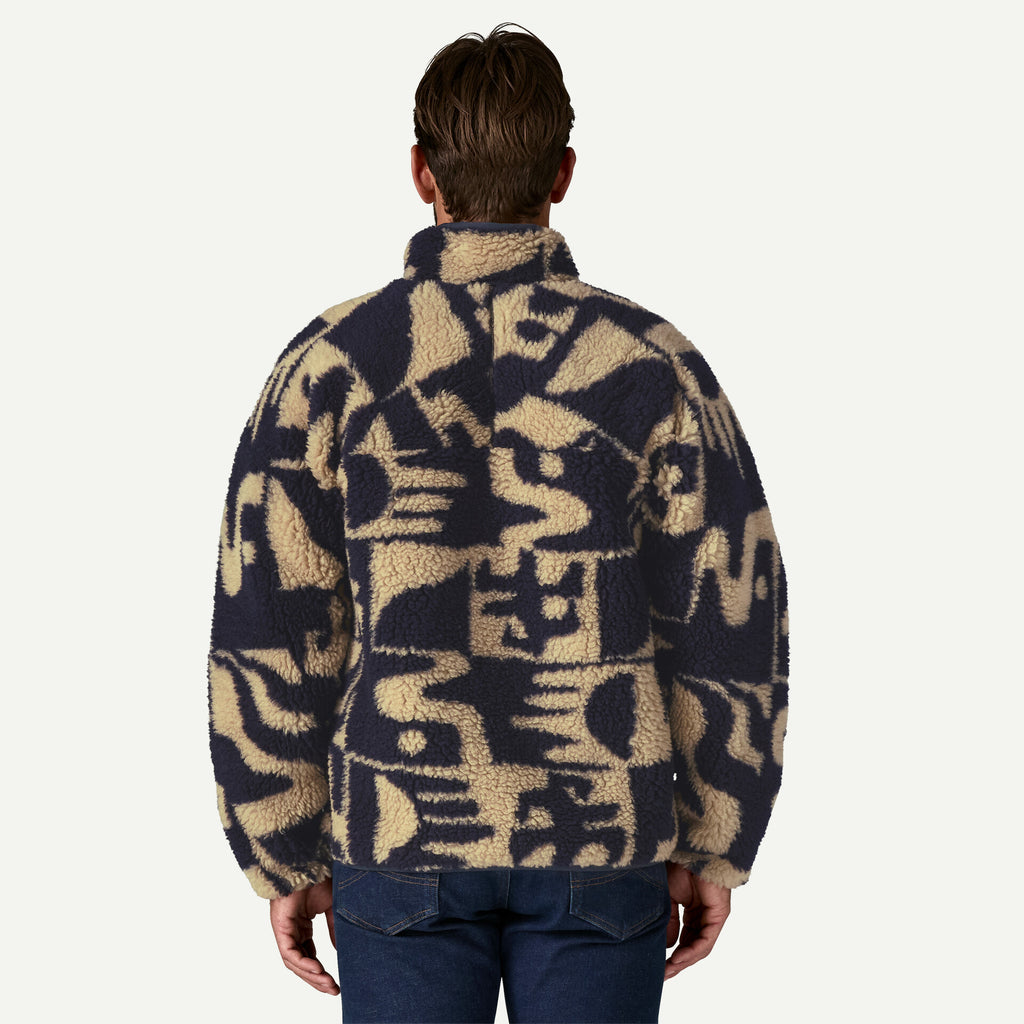 プリント:16.5オンス・ポリエステル77%(消費者から回収されたリサイクル・ポリエステル60%)/リサイクル・ウール23%のジャカード・シェルパ・フリース