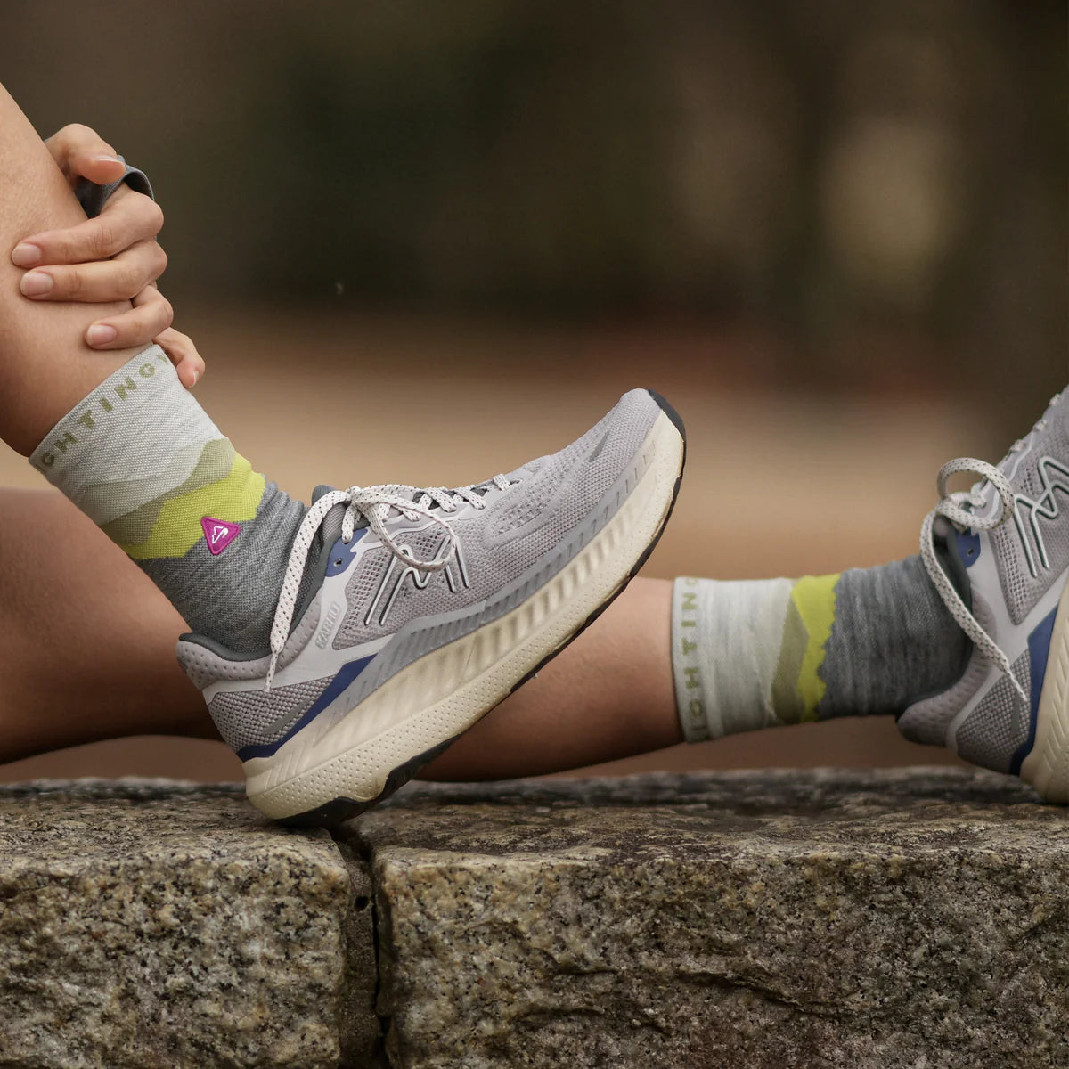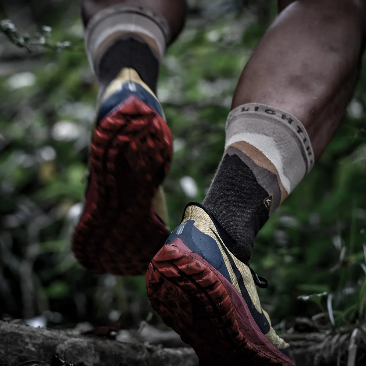 dayBreak シリーズに、メリノウールを使用したソックスが新登場。よくあるハイク用ソックスの太い糸を使用したウールソックスではなく、あくまでも今までのMSSシリーズと同じような高いフィット感を再現するため、梳毛糸(そもうし)を使用してしなやかな肌触りを実現した。負荷のかかるつま先部とかかと部分に関しては、引き続きコーデュラナイロン糸を混紡することにより耐久性も申し分なし。テント場での使用を想定して足袋型を採用し、ミッドカットのシューズでも問題なく使用できるよう丈は従来モデルより約5cm長く仕上げた。