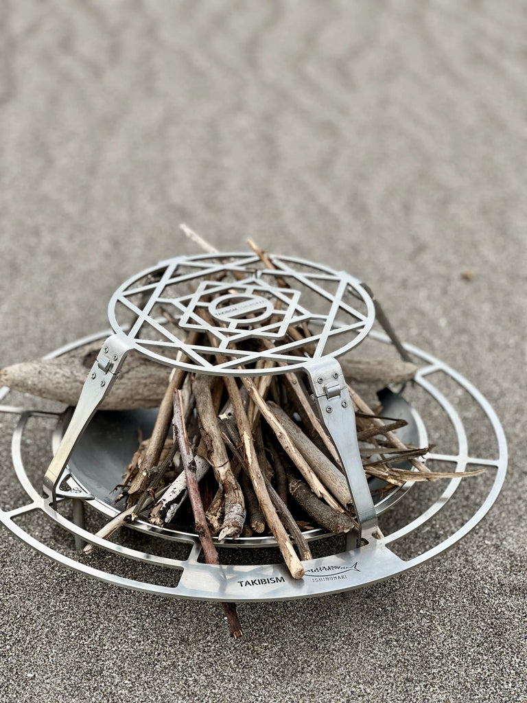 コンパクトで設置も簡単。鍋やヤカンをのせるだけでなく、濡れた薪を乾かしたり、使い方次第で多彩なアウトドアシーンに活躍します。