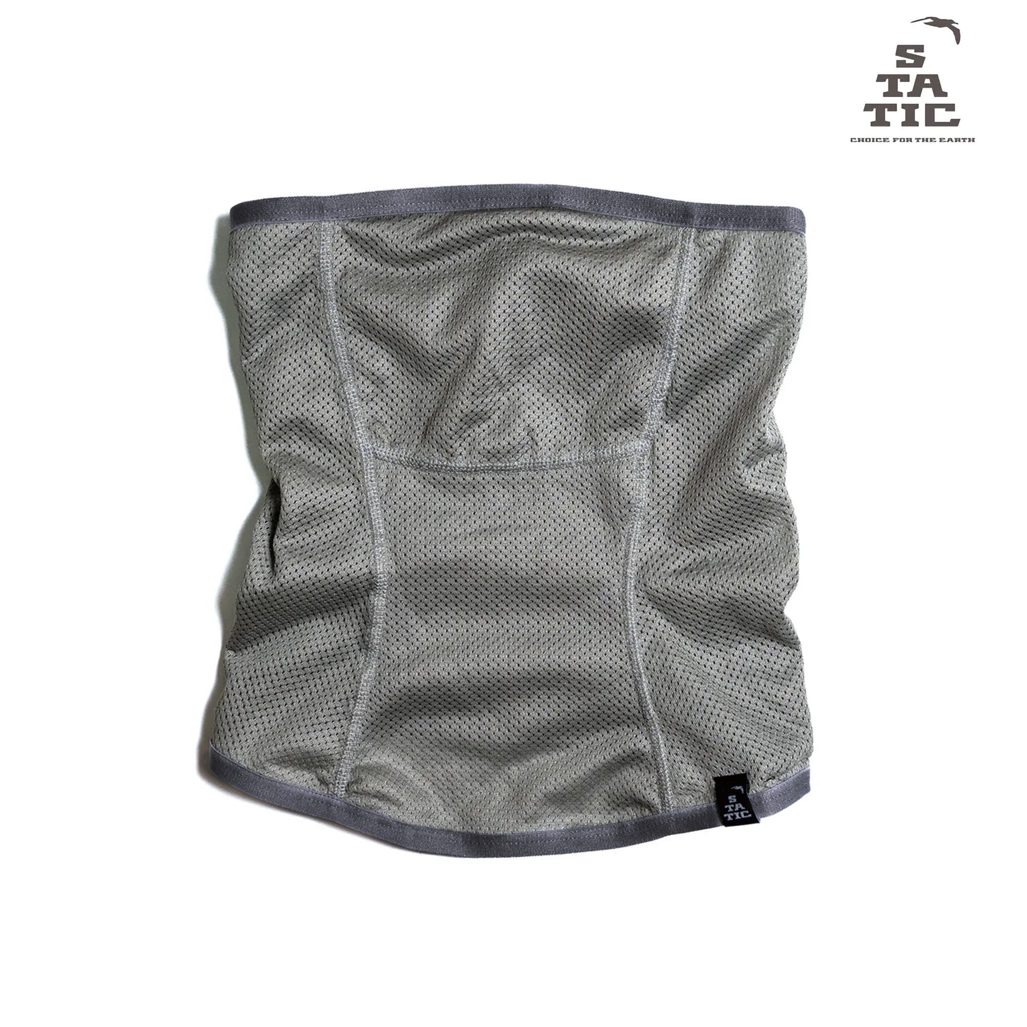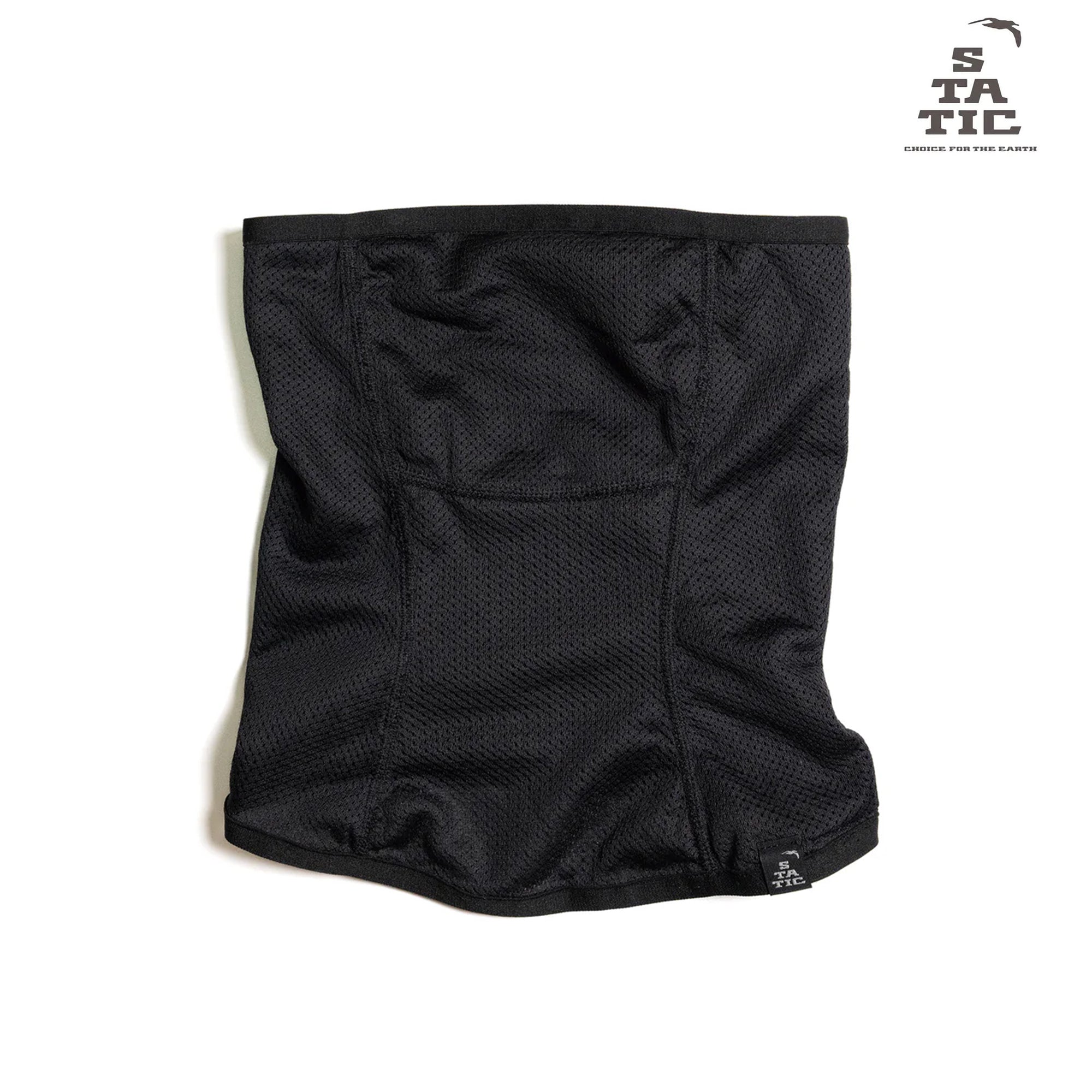 表のメッシュ素材に保温材になる異形断面中空ポリエステル起毛繊維を一体化させたメッシュフリース素材のOcta®CPCP®。その軽さと暖かさ、熱抜けの良さが特徴のポリエステル生地。 通常は裏地として使うがSTATICでは単体フリースとして採用しました。