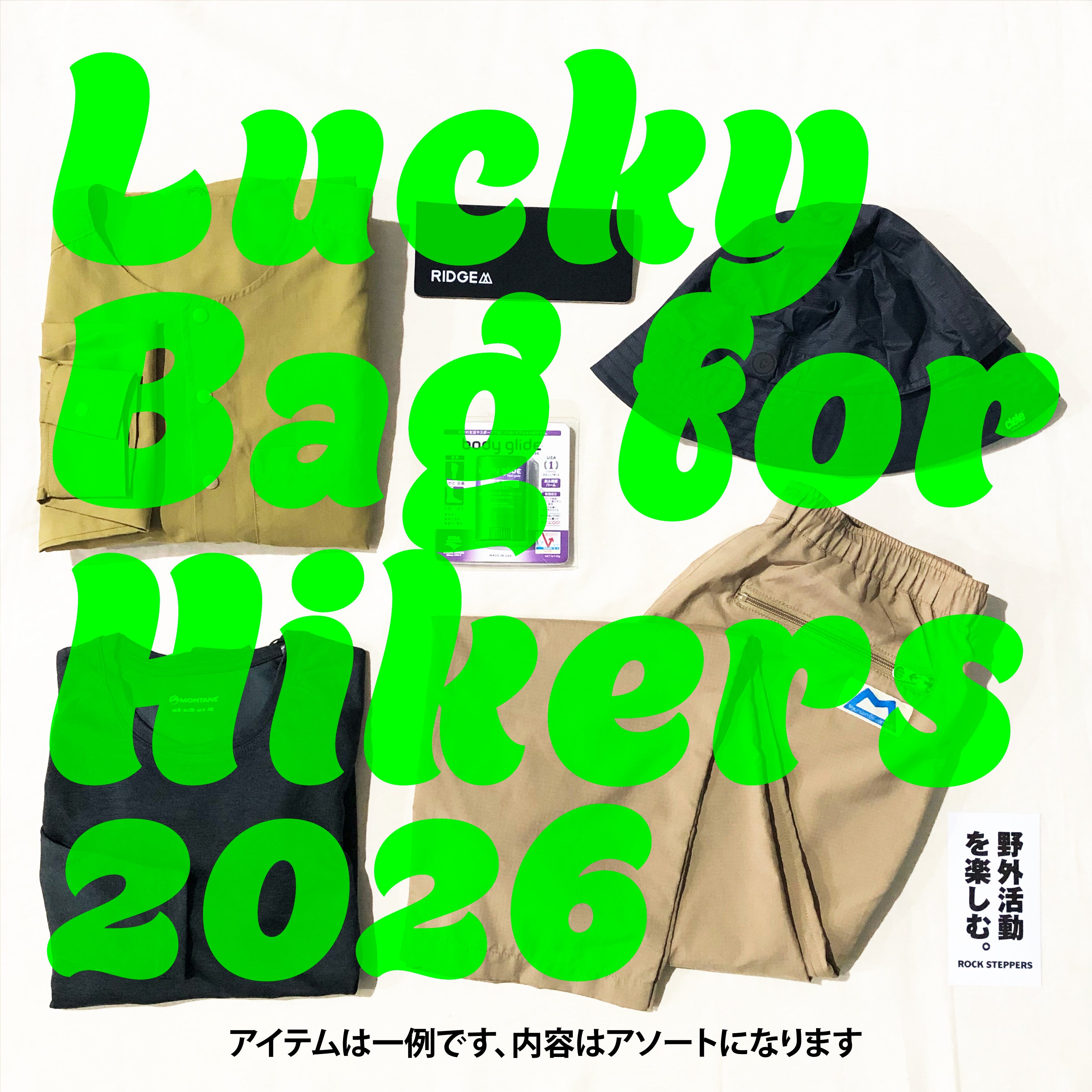 RIDGE MOUNTAIN GEAR、CIEL、Teton Bros. Trail Bum 、Montaneなど、ハイカーに人気のブランドアイテムを厳選して詰め込みました! どのブランドに出会えるかは開けてからのお楽しみです。