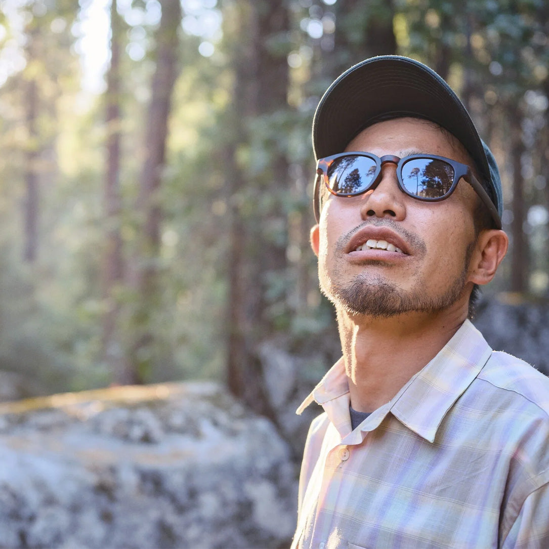 樹林帯に入って視界が暗くなった時や、ふとした瞬間にサングラスを外したい時。 LONE PINEなら、そのまま首に掛けることができます。独自のテンプル形状が首元に引っかかり、ネックレスのように安定して保持。 収納ケースに出し入れする手間を省き、置き忘れや紛失のリスクも減らす、実用的な機能です。